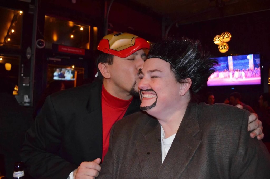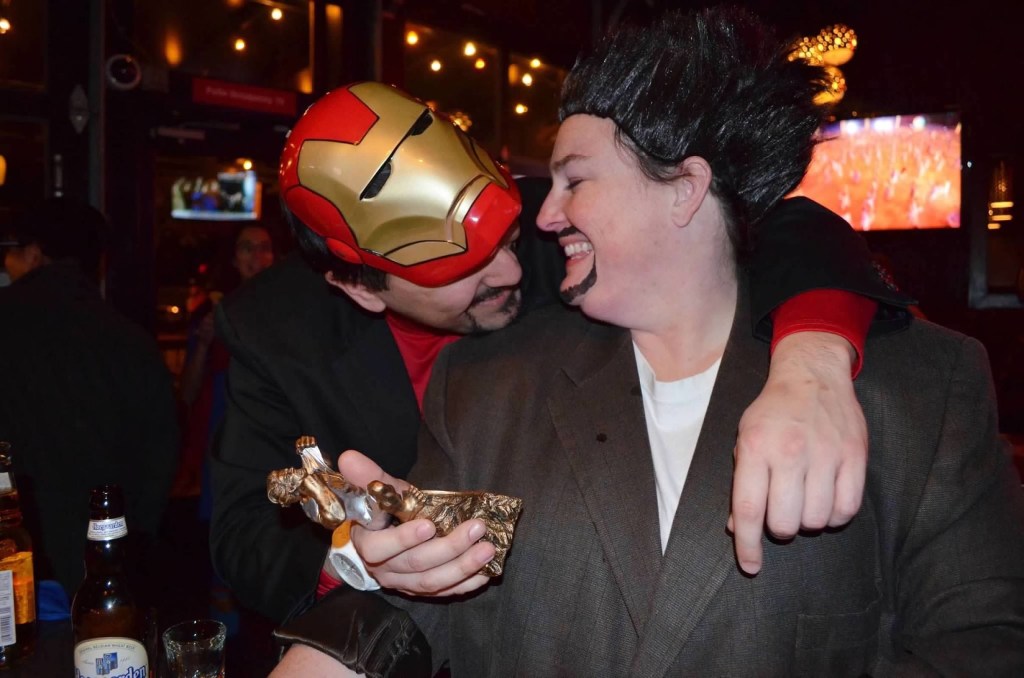 I dressed up as Tony Stark with a working arc reactor, and acted as if I was him. I thought Josie had dressed up as the Comedian from the Watchmen movie, since she arrived with Alicia who was dressed up as Silk Spectre II.