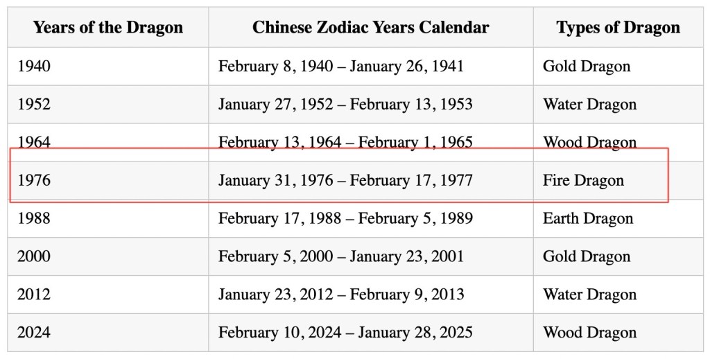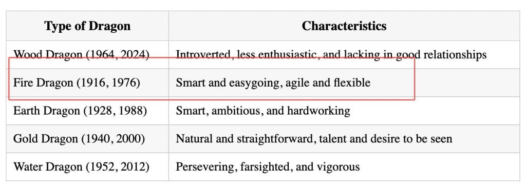 Based on the Chinese Zodiac Calendar, not only am I a dragon but a Fire Dragon at that! So cool.