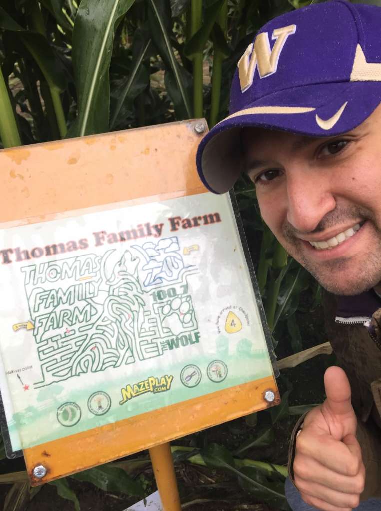 My first year working at the Woodinville Costco was a time of learning and observing. Along Washington Highway 9 especially between Clearview and Snohomish there are expansive farm fields on either side. Therefore the advertising isn’t difficult to notice and read. One was (still is) a billboard sign for Thomas Family Farms enticing you to turn left (westward) to their place to enjoy fresh picked apples, corn, kid’s activities, and of course their main draw – Adventures In Corn Mazes – Their corn maze!