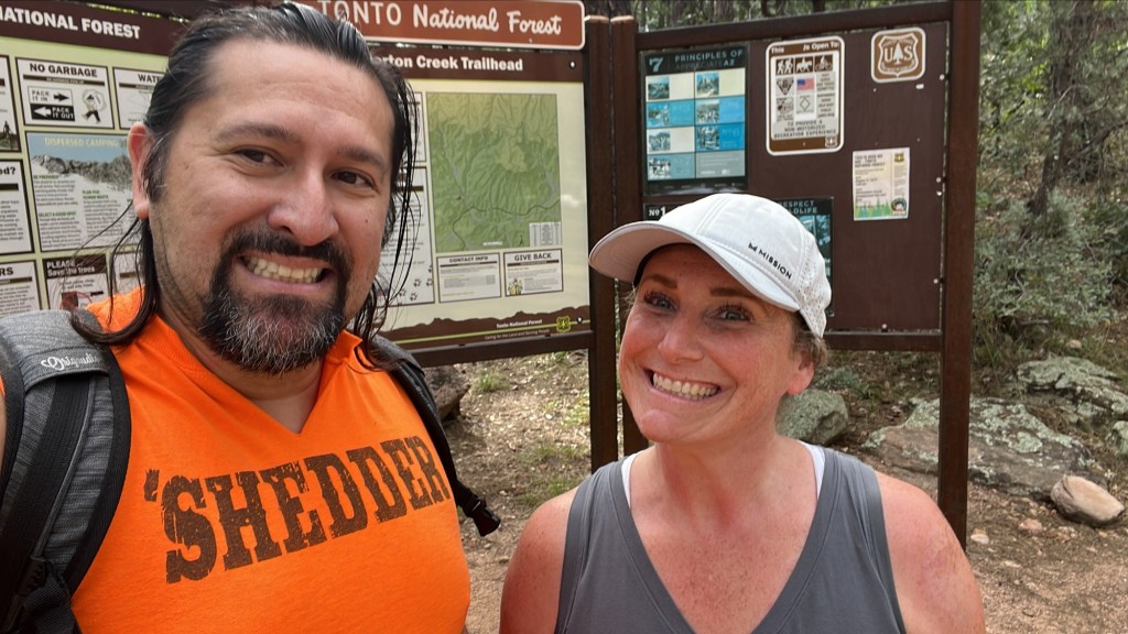 September 7, 2024 – Jen was visiting once again, so she was up for another hike with me. The suggestion from my manager at Costco, and my House Boss was: Tonto Natural Bridge in Pine, AZ.