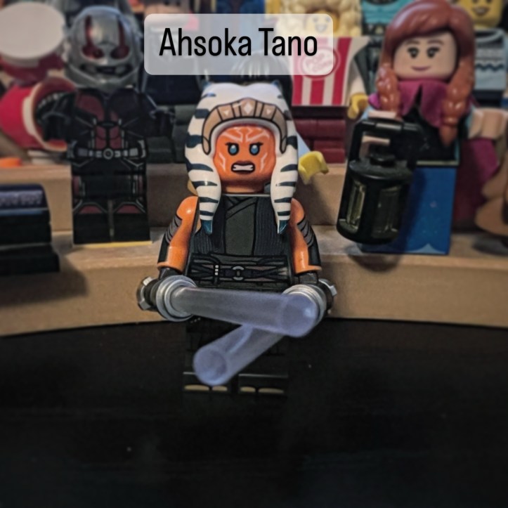 Ahsoka has changed quite a bit since her last minifigure, she now has a shorter lekku with a slightly different face print, she now has arm printing with some gray hands, her torso and leg printing matches her appearance during the Mandalorian and Ahsoka series, with feminne curves, her leg printing represents her baggy jeans she wears during Ahsoka with some printing which look like feet due to her shoes during the shows, despite her lightsabers being the same as her rebels sabers in canon, she sticks to regular lightsaber blades, just that she has clear lightsaber blades to represent her white ones.