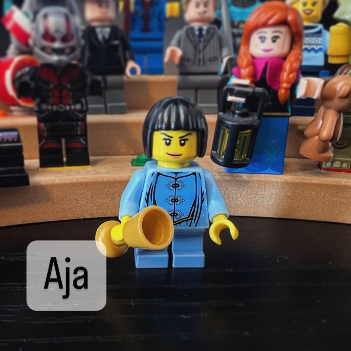 Continuing my minifigs review: A-Z. This one is on my “can’t cut list”. It’s an LEGO avatar of my homie, Aja. Our mutual friend, Josie, had passed away so Aja stopped in to celebrate Josie’s life together.