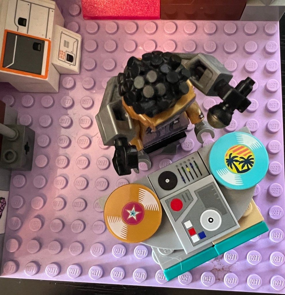 DJ Zyx’s greatest allies and co-conspirators in his music-driven journey are none other than the mysterious Blacktron Space LEGO theme. His close friendship with the Blacktron operatives—those rogue, black-and-yellow clad, space-faring mercenaries—was born out of a shared passion for rebellion and defying the status quo. The Blacktron crew’s penchant for chaos and innovation aligned perfectly with DJ Zyx’s boundary-pushing, genre-defying beats, and together, they’ve built an underground scene where the music never stops and the party never ends. The Blacktron faction provides the alien DJ with top-secret, high-tech gear and transport, while he supplies them with pulsating rhythms that help fuel their nefarious operations. Whether he’s performing on the decks of a Blacktron ship or covertly broadcasting transmissions across the galaxy, DJ Zyx’s sonic influence has become a cornerstone of Blacktron’s rogue culture, weaving a unique bond between music, rebellion, and the stars themselves.